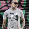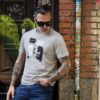 100% organic cotton T-shirt screen printed with eco friendly water based inks. Available in grey and red.